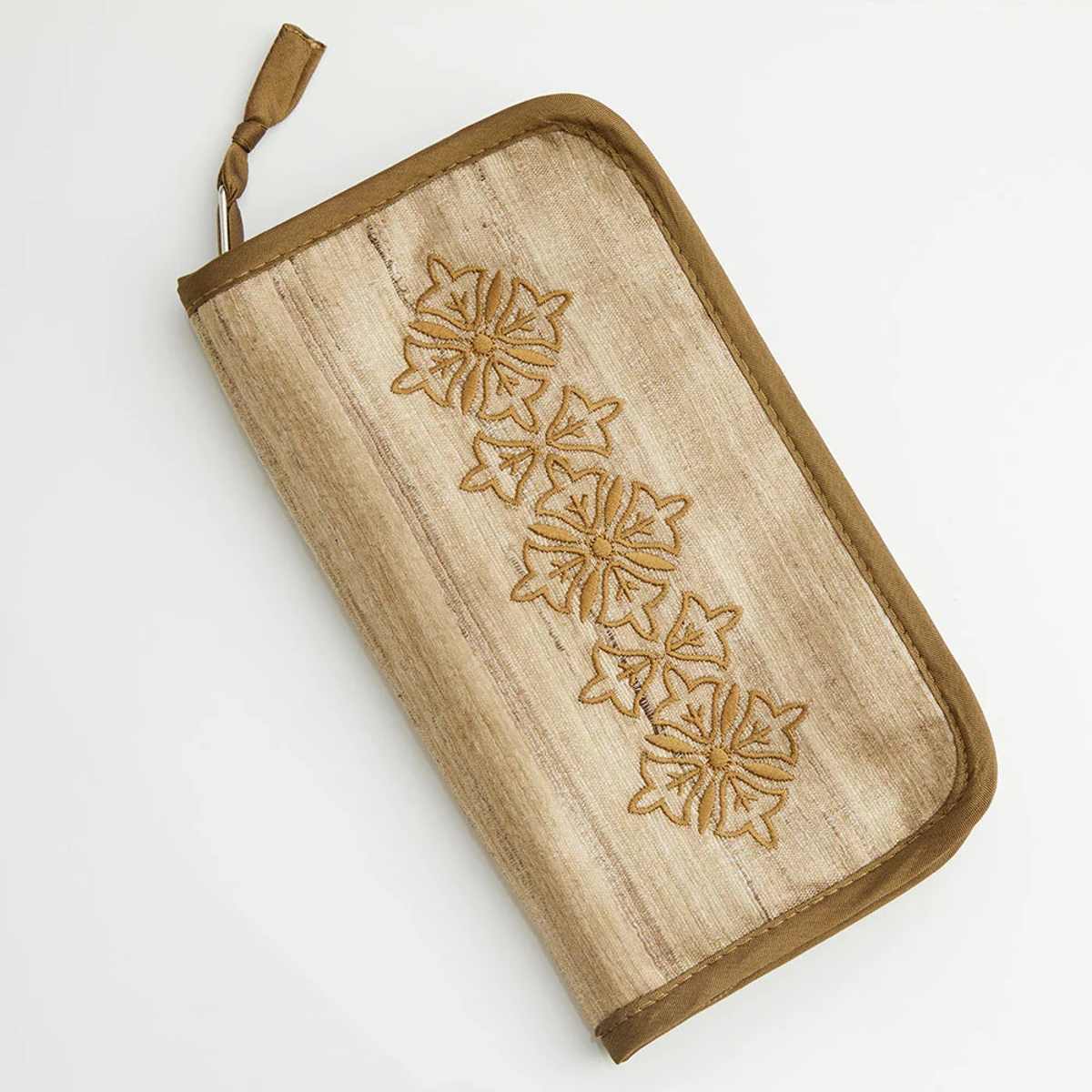 The wallet is made of Khadi silk , a historically important Indian material, crafted by Indian artisans.