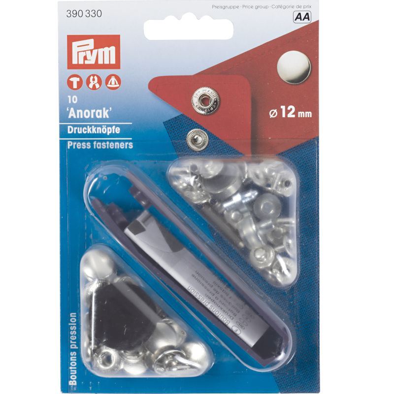 Buttons "Anorak" with tool, for outerwear, 12 mm, 10 pcs - silver /Prym/