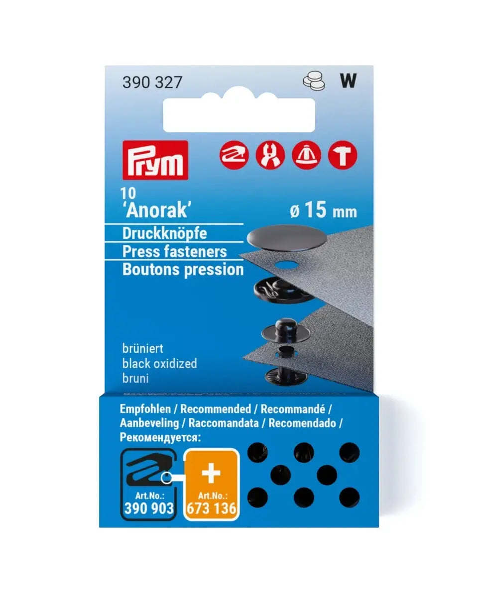 Snap buttons "Anorak" for outerwear, 15 mm, 10 pcs - oxidized black - refill set