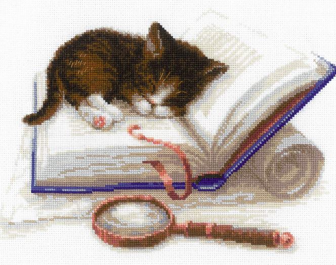 Kitten on a book - embroidery kit /RIOLIS/ 30 x 24 cm