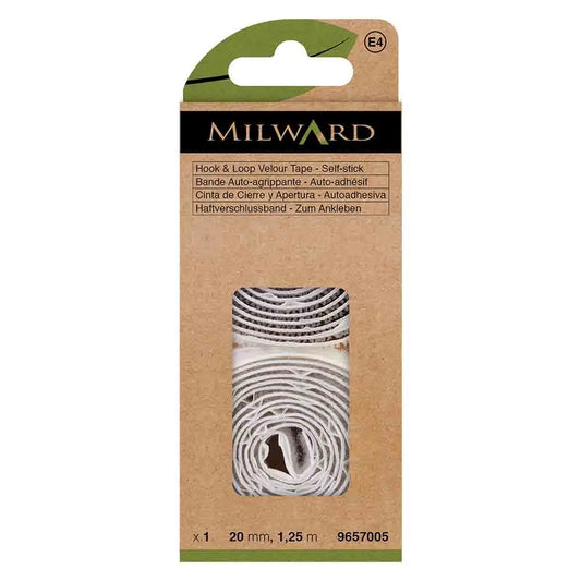 Adhesive sticky hook and loop fastener 1.25mx 20mm /Milward/ - adhesive fastener - white