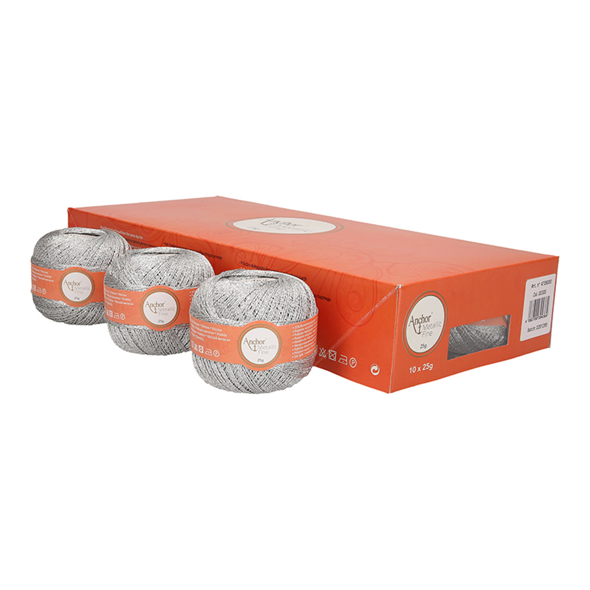 Anchor Metallic Fine is thin and delicate yarn made from a blend of viscose (65%) and metallized polyester (35%), which gives it a gorgeous shimmering effect.