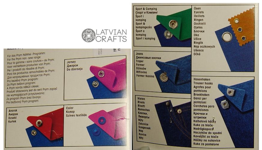 The tool will work perfectly with Prym jersey, anorak, color, sport & camping, eyelets, jeans, trouser hooks, rivets snaps and hooks.