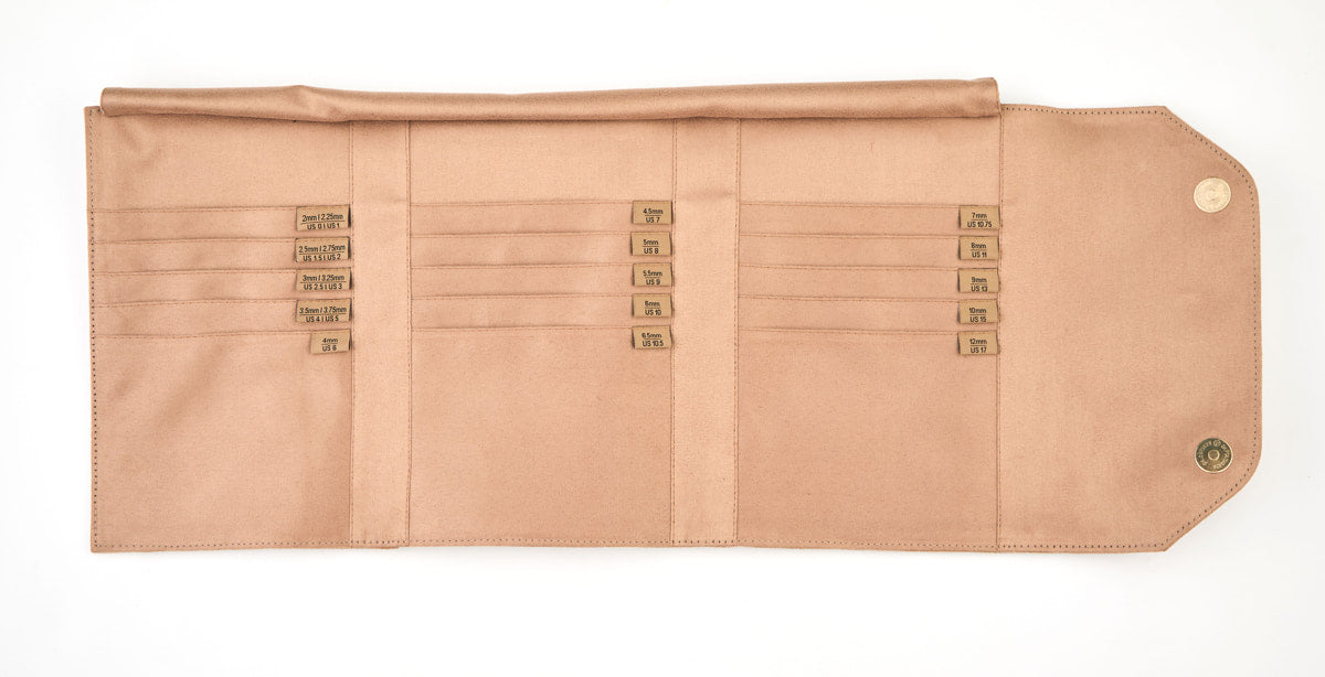 - Faux suede cases are flexible but durable and won't scratch the needles.