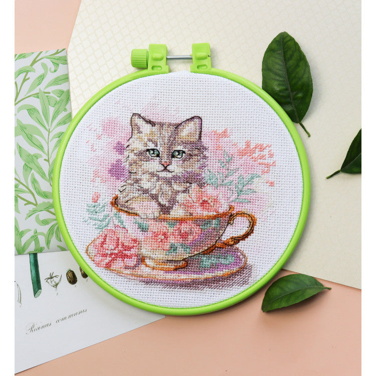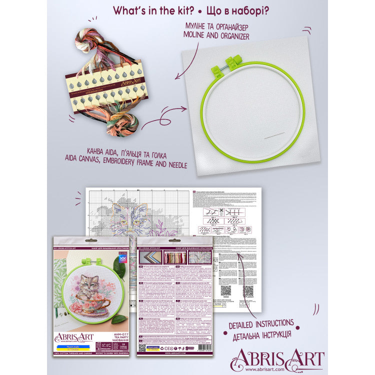Tea Party - embroidery kit + embroidery hoop /ABRIS ART/ 17x17cm
