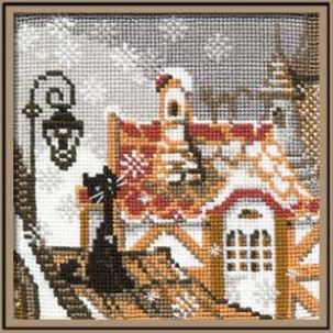 City and cats "Winter" - embroidery kit /RIOLIS/ 13 x 13 cm
