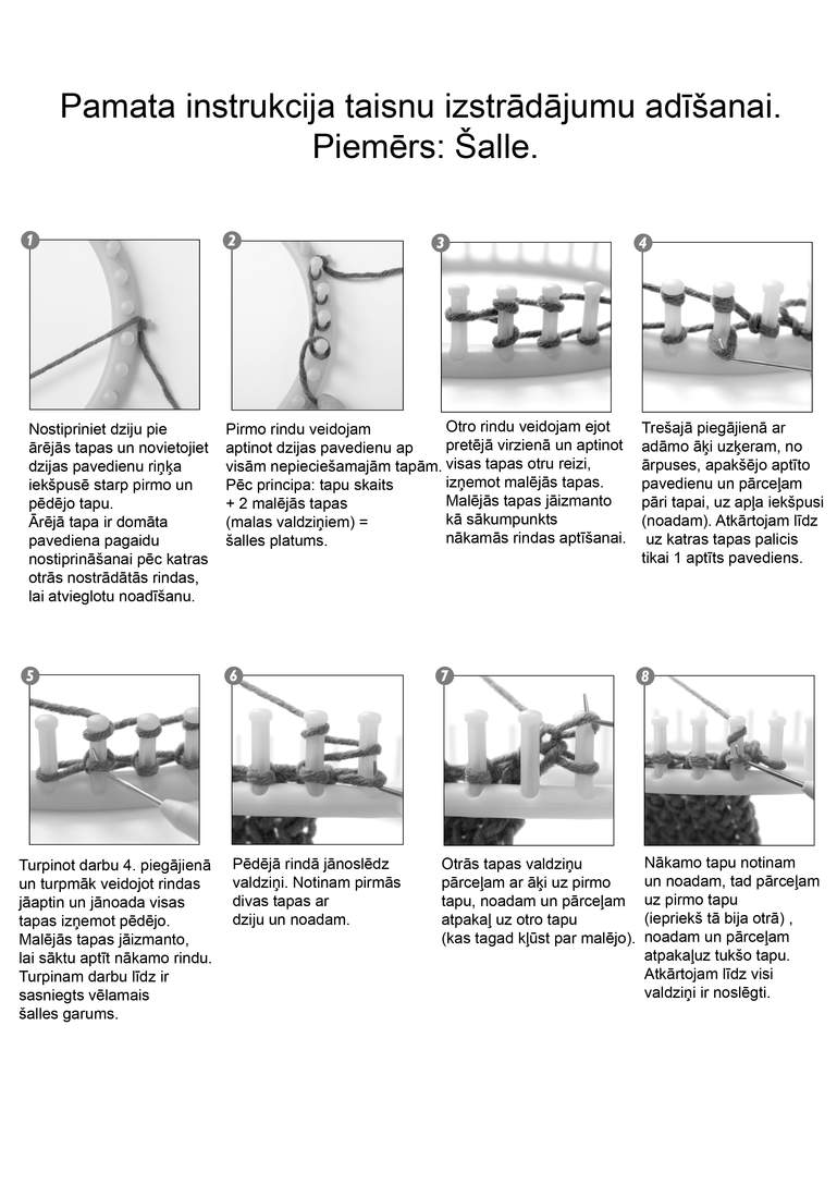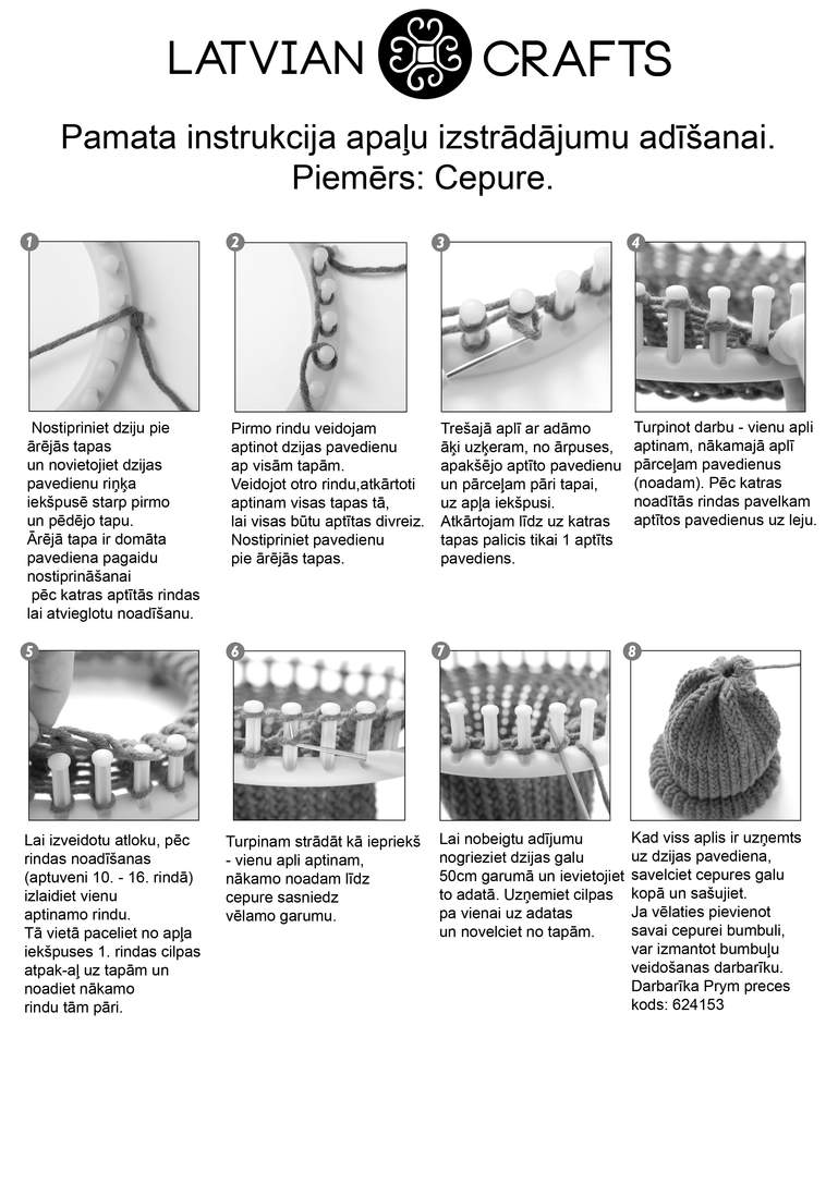 1 Green circle - 18cm diameter, 31 pins, maximum width of straight knitting ~54cm