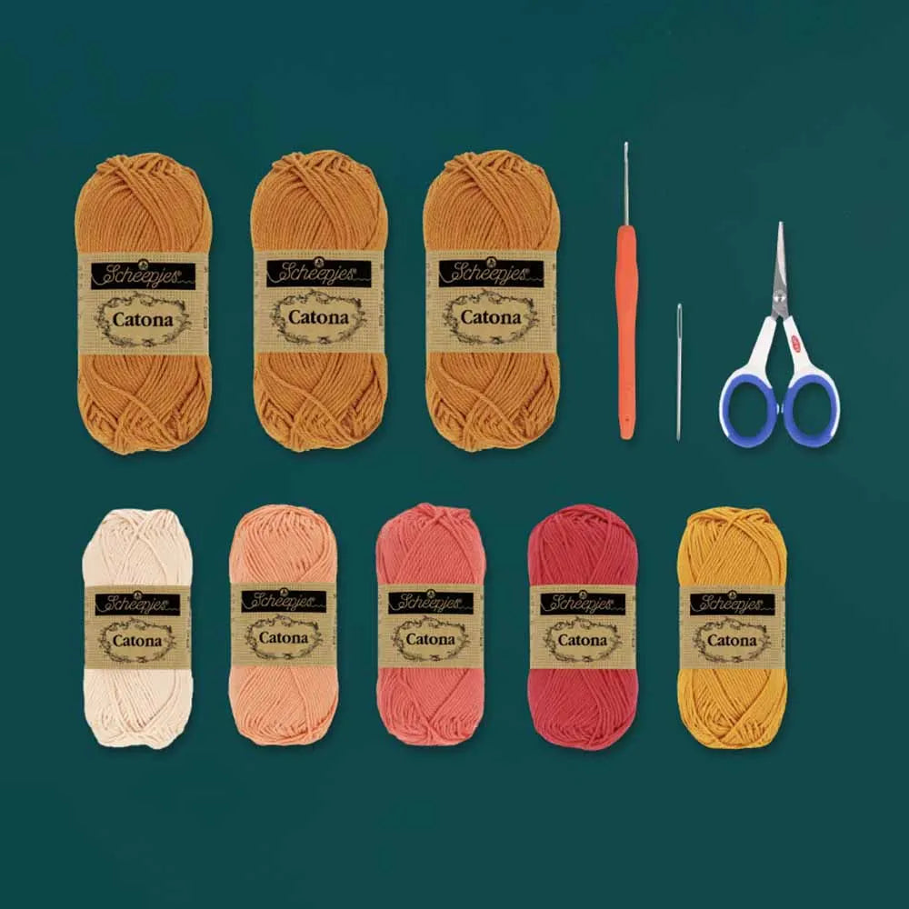 The entire bag is crocheted with Scheepjes Catona, a 100% mercerized cotton yarn with a beautiful shine and fingering yarn thickness.