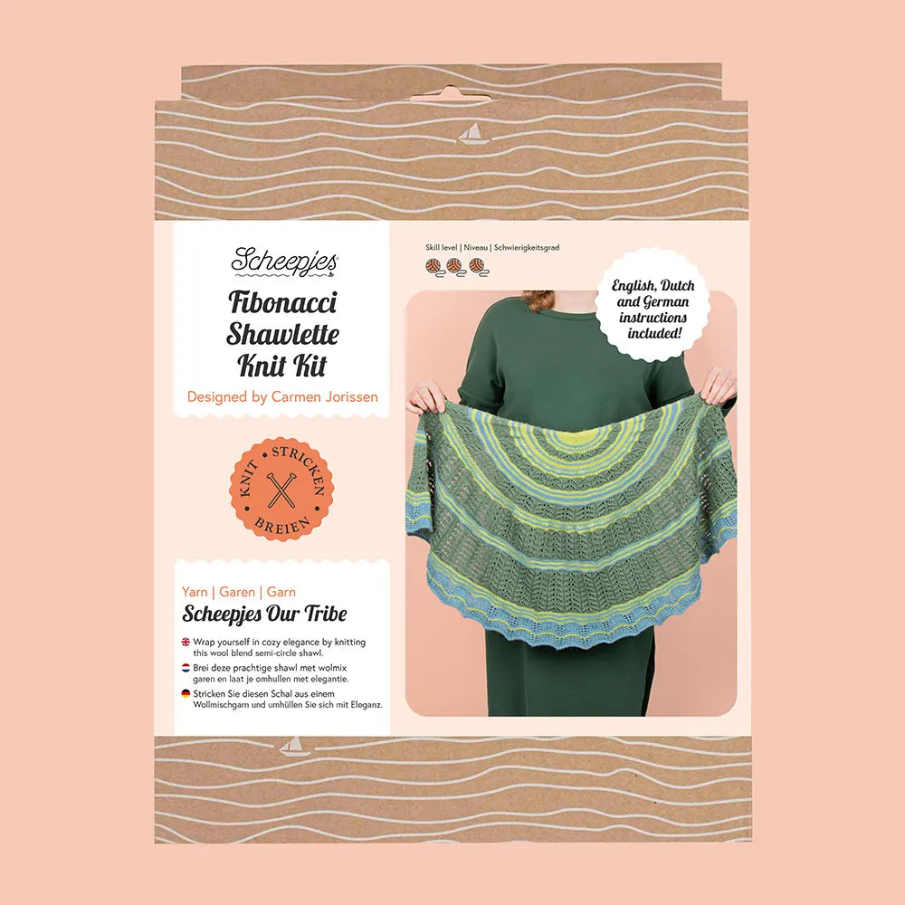 Scheepjes Fibonacci Shawlette Knit kit / Shawl scarf knitting kit, ENG