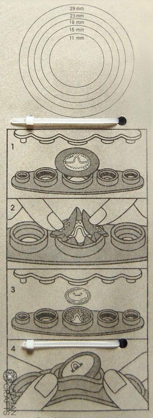 Universal tool for turning Prym metal buttons 11; 15; 19; 23; 29 mm in diameter. Find the currently available buttons below.