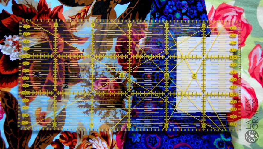 Universal ruler for sewing. Designed for small pieces of fabric. With 30°, 45° and 60° corner markings.