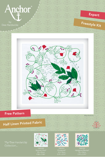 Dee Hardwick's collection is inspired by the elements of nature and uses delicate natural colors that will bring green, blooming nature into your home. The patterns in the kits are designed for both cross stitch and those that you choose yourself and still go perfectly together.
