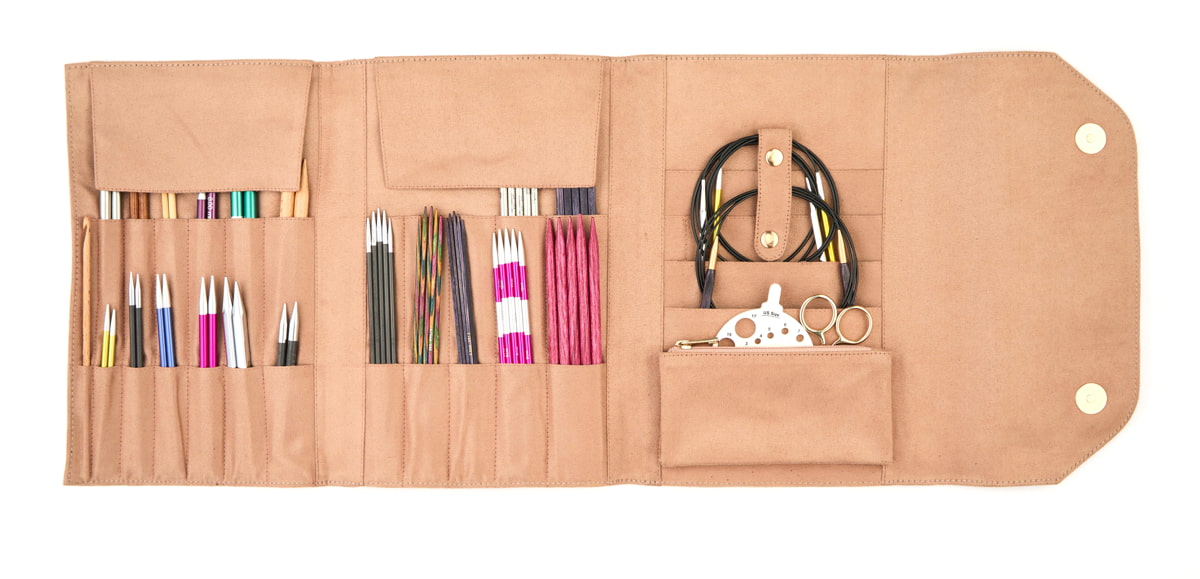 Komplektis on 22 taskut, mis võimaldavad hoiustada kõike alates varrastest kuni heegelnõelte ja tarvikuteni.