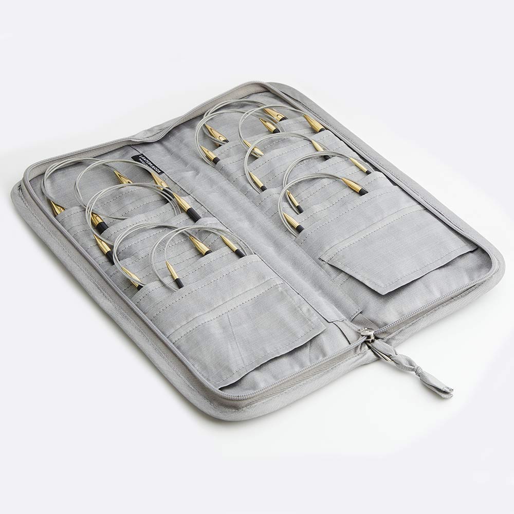Polsterdatud ümbrisel on 16 sisemist taskut mitme ringnõela ohutuks hoidmiseks ja kaitsmiseks, samuti 2 taskut tarvikute jaoks.
