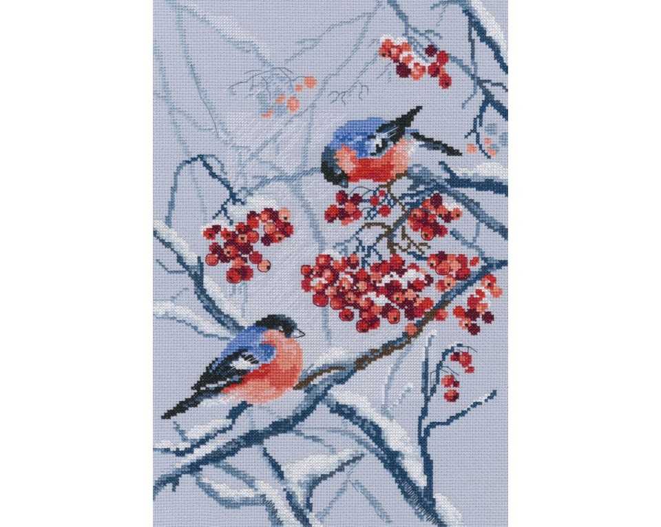 Sarkankrūtītis pīlādžos - izšūšanas komplekts /RTO/ 22 x 33 cm
