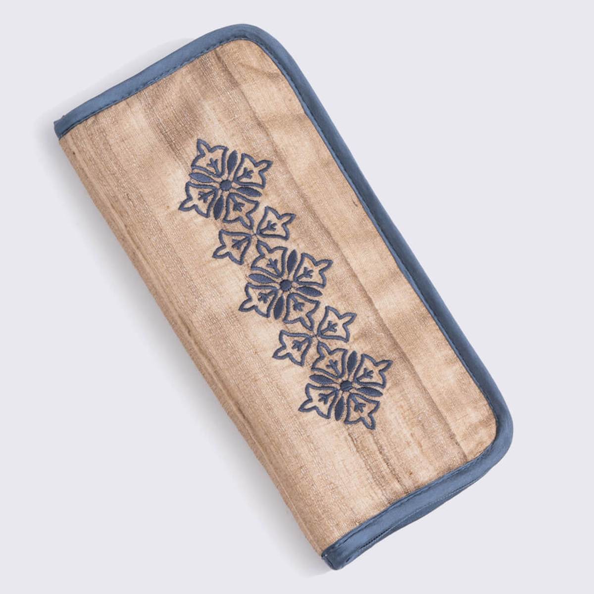 Maciņš ir izgatavots no Khadi zīda, vēsturiski nozīmīga Indijas materiāla., Indijas amatnieku darināts.