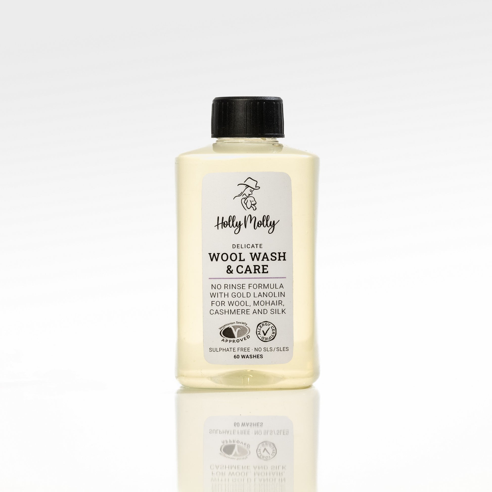 Holly Molly vilnas mazgāšanas līdzeklis ir dermatoloģiski pārbaudīts un saudzīgs pret jutīgu ādu. Tas ir bez smaržas, PH neitrāls, apstiprināts Veģetāriešu biedrības, kas nozīmē, ka tas nav testēts uz dzīvniekiem, un tam ir arī alerģijas sertifikāts.